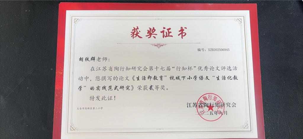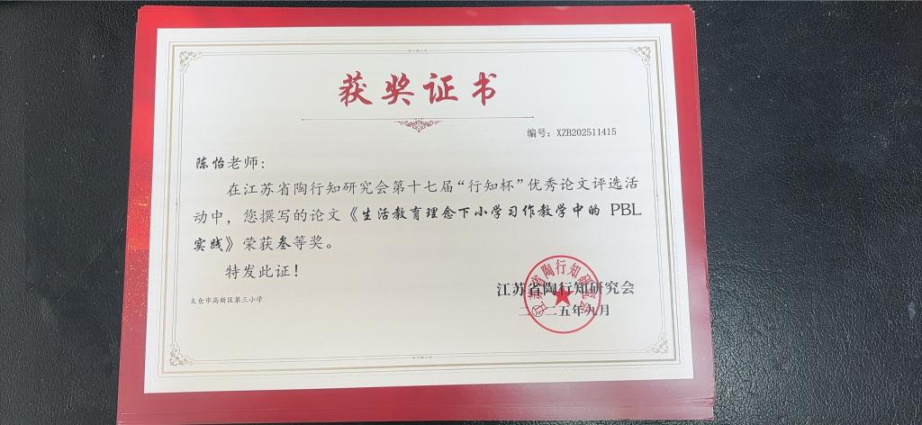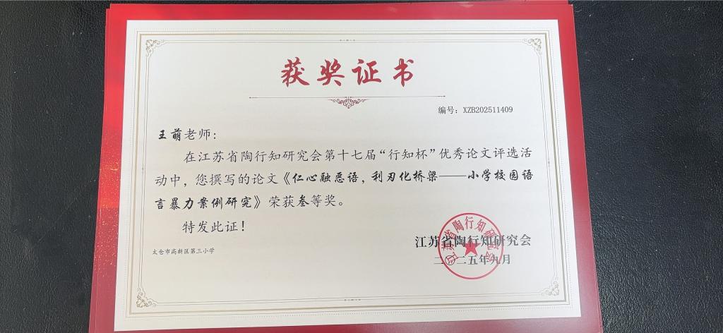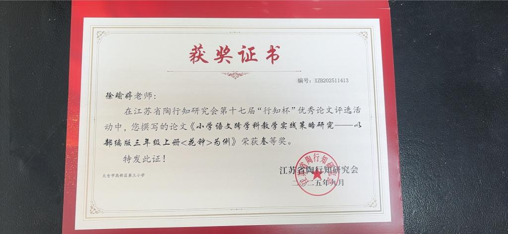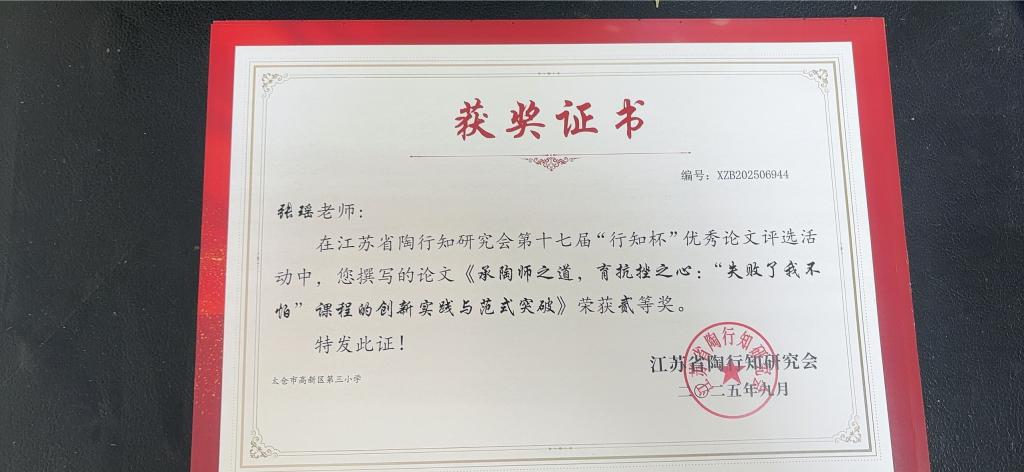 凡姗姗、赵凡琳、周齐煜、张瑶、胡轶群、汤凯、王利凤、邓淑乐、王萌、李偲、舒玲、赵锦宇、徐瑜婷、张健、康伟、陈怡、周岗、陆海勇、陆弯、付宁、徐佳倩老师在江苏省第十七届“行知杯”优秀论文评比活动中获奖。
