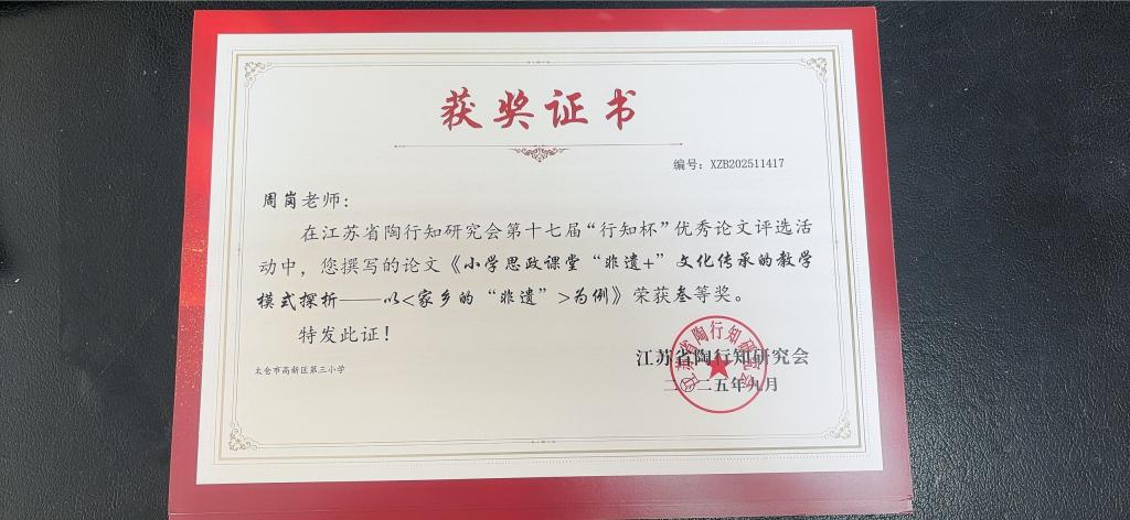 周岗、赵凡琳、王萌、李敏瑾、唐尤龙、周齐煜、张健、李想、沈昊君、徐瑜婷、陈建蓉、陈怡、舒玲老师在2025年太仓市中小学教师学科专业素养竞赛活动中获奖。