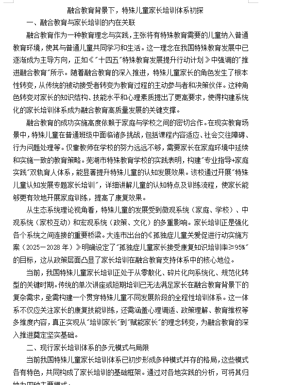 有效的家长培训体系不仅是知识和技能的传递,更是赋能家长的过程,使其成为融合教育中不可或缺的合作伙伴。只有当家长被充分赋能,融合教育的理想才能真正落地生根。