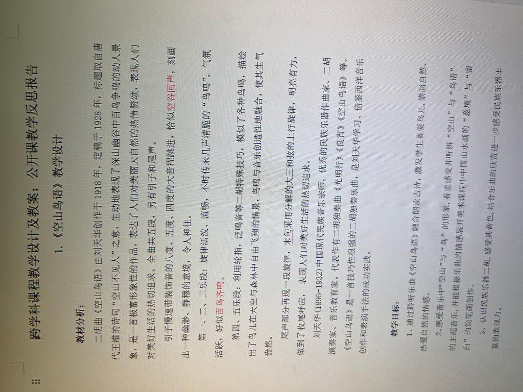 活动前期,课题组成员拆解《空山鸟语》《喜洋洋》《春节序曲》三首乐曲核心元素,结合语文、美术、品德与社会学科课标,确定“音乐+”融合方向。随后在中高年级开展3节实践课,通过课堂观察发现,学生对《喜洋洋》节奏与秧歌动作的具象关连受度高,但在《空山鸟语》音乐情绪转化画面细节、《春节序曲》乐曲结构与节日文化结合等方面存在困难。