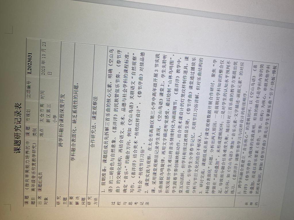 为破解音乐欣赏教学中学科融合表面化、缺乏系统性的难题,2025年10月23日,太仓市高新区第三小学音乐备课组组织《指向审美能力培养的中高年级音乐欣赏教学研究》课题组成员围绕“跨学科融合课程深度开发”主题开展研讨活动。